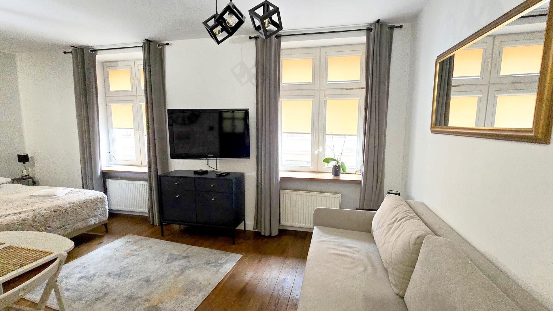 Prosta Apartment No. 3 is a self-contained, city-style apartment located in the center of Toruń, within walking distance of the Old Town. The property is designed for guests traveling for leisure or business, expecting a predictable standard and functional space. The apartment's layout ensures a comfortable stay for both short and long stays. It is a practical base for those who value location, independence, and ease of use. Type and Standard