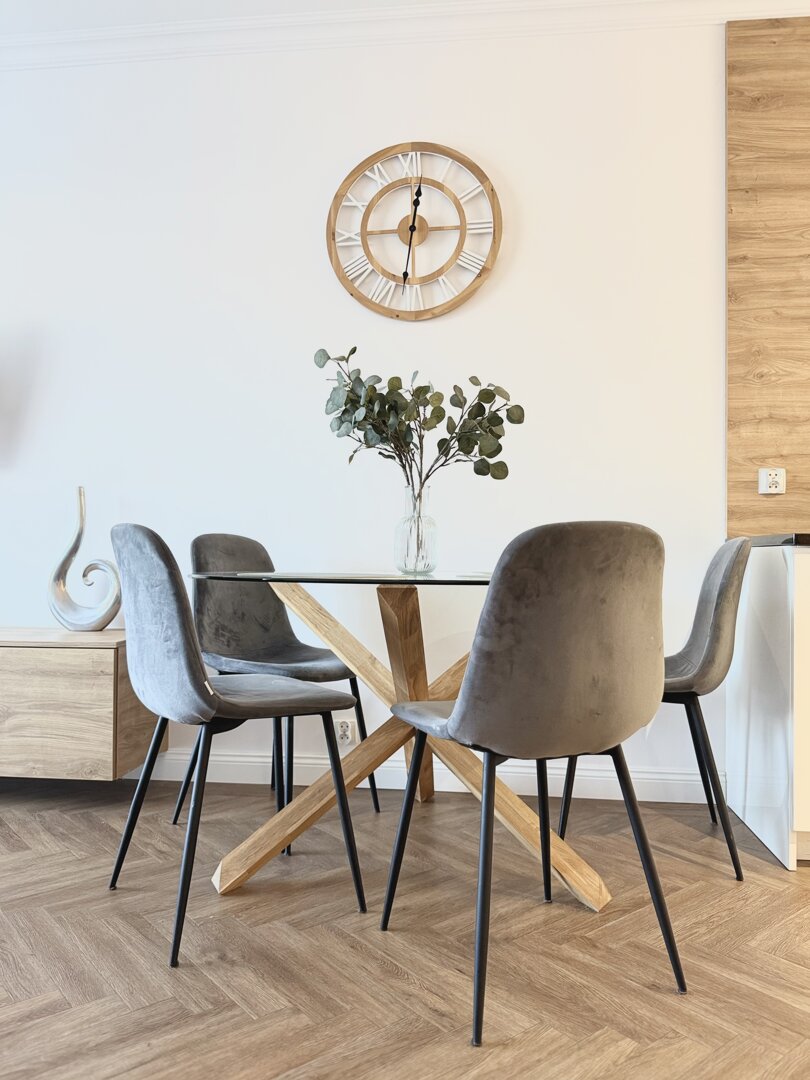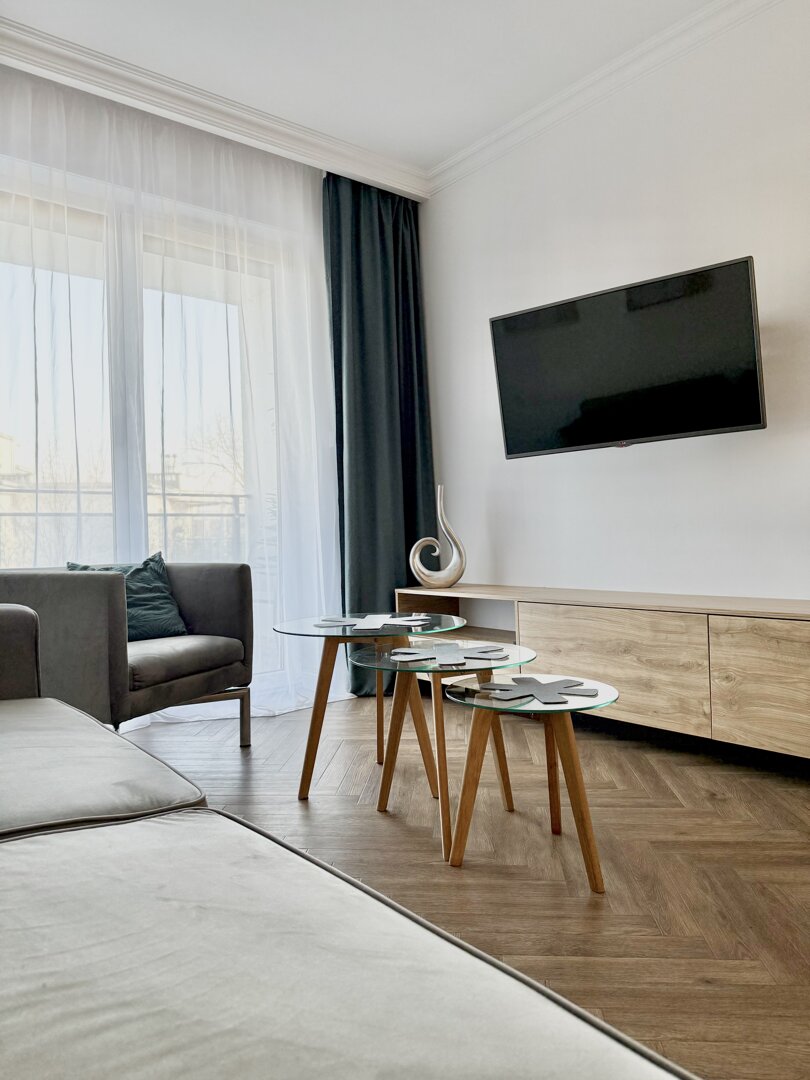 The Bawarczyków Apartment is a self-contained 49 m² apartment located in Toruń, offering accommodation for up to four people. It comprises a bedroom, a living area with a kitchenette, and a balcony overlooking the city, providing a functional space for work and relaxation. The apartment is fully equipped with all necessary appliances and amenities – a kitchen with full appliances, a bathroom with a shower, free Wi-Fi, and a private parking space. Its location close to Toruń's central attractions and good transport links make sightseeing and planning your stay easy, whether for tourism or business. The standard is consistent with the description and photos, providing bright, well-lit interiors and a comfortable stay. Type and Standard