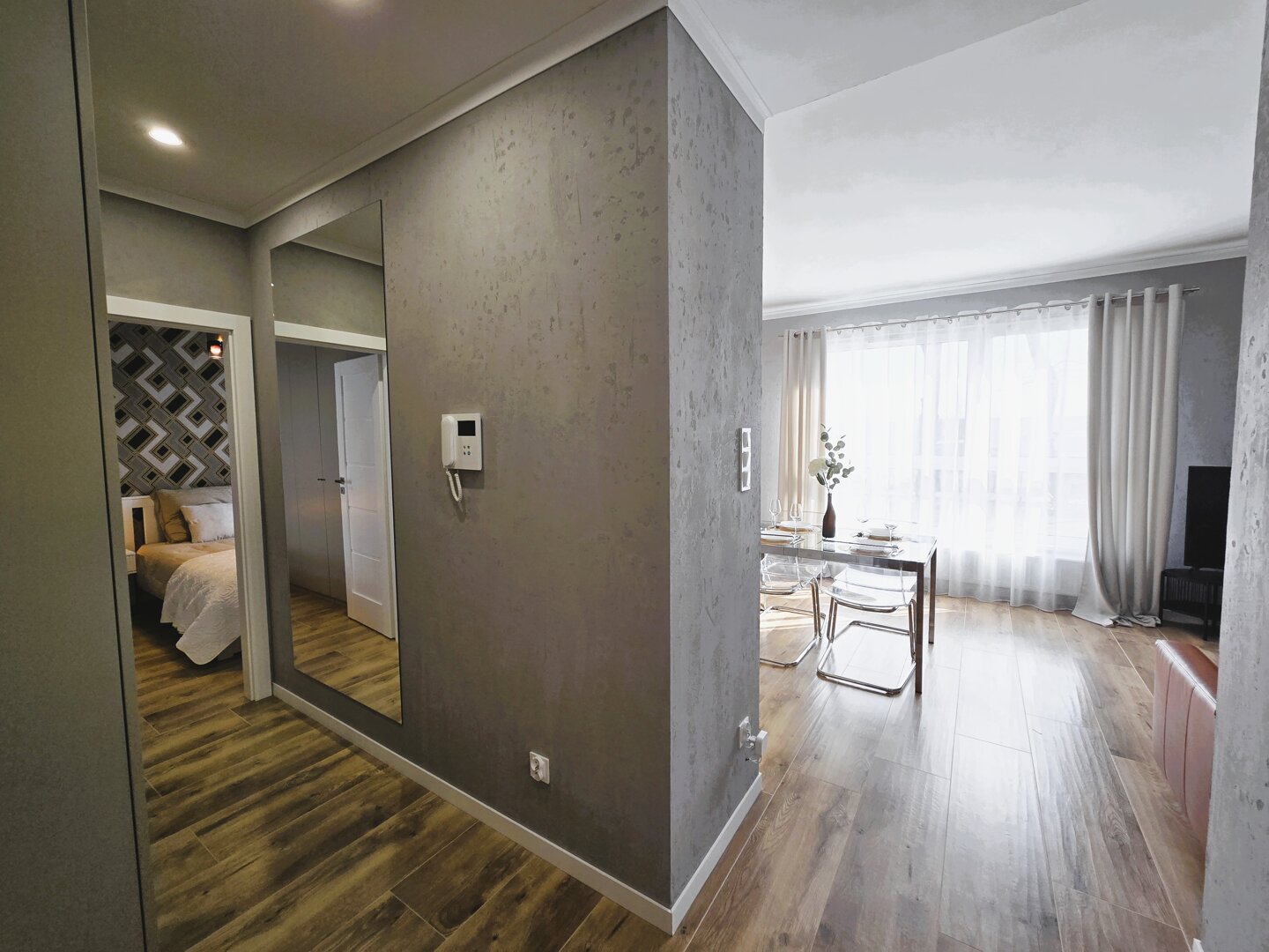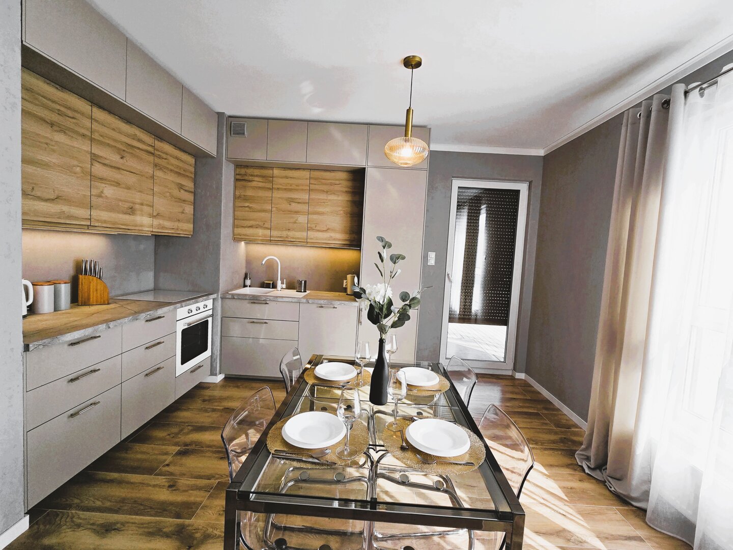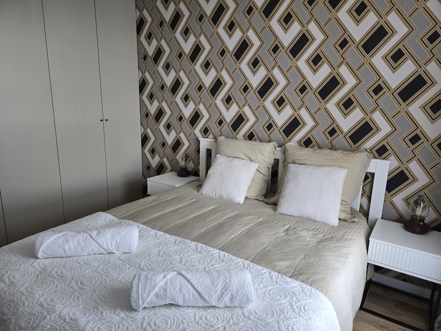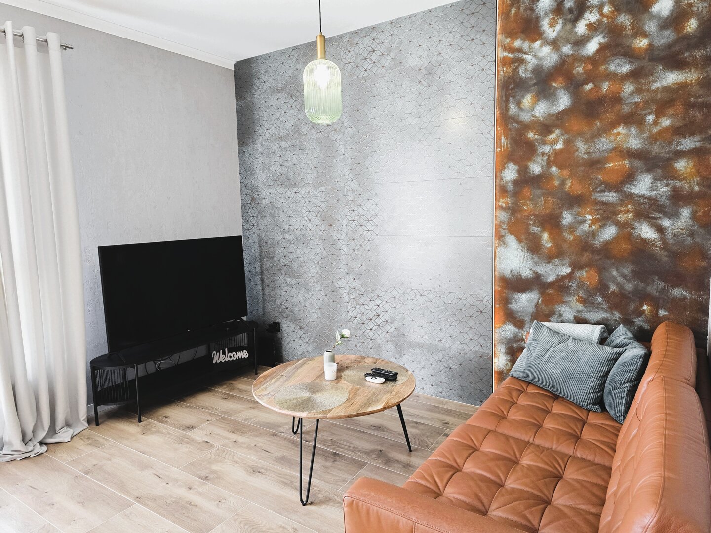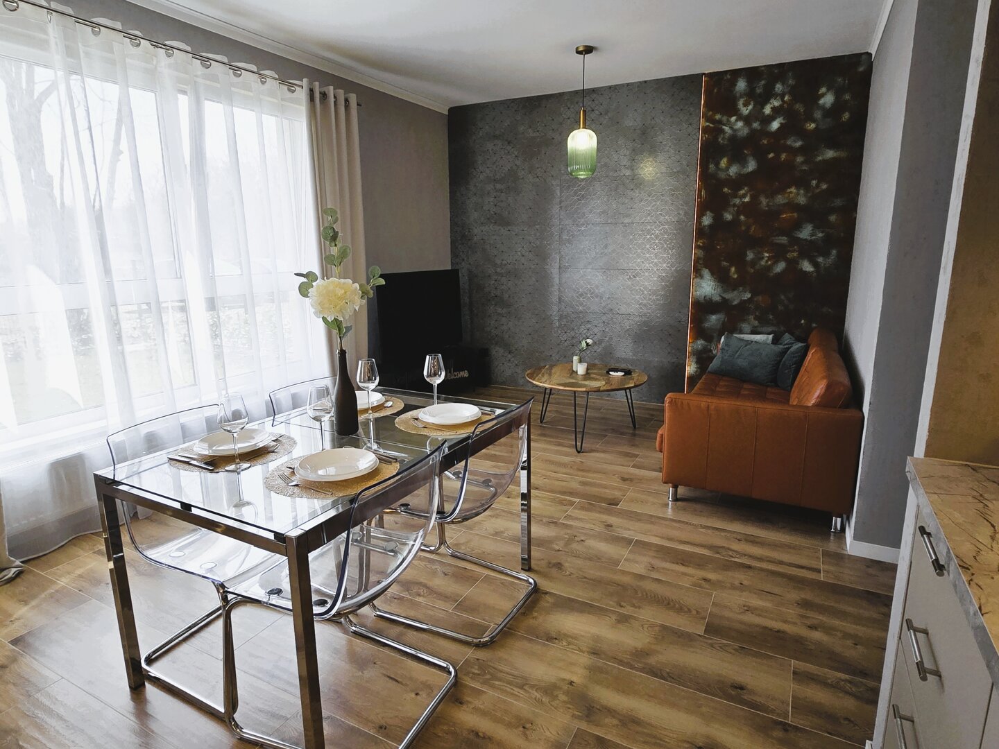 The Zimowy Apartment is a self-contained apartment in Toruń, located on Zimowa Street on the left bank of the Vistula River. The approximately 45 m² apartment accommodates up to 4 people and offers a separate bedroom and a spacious living room with a kitchenette. Its location combines a quiet, green neighborhood with quick access to Toruń's historic center in just a few minutes. The apartment is equipped with a full kitchen, a private bathroom, and on-site parking. The standard and layout of the space meet the typical expectations of both leisure and business guests. Type and Standard