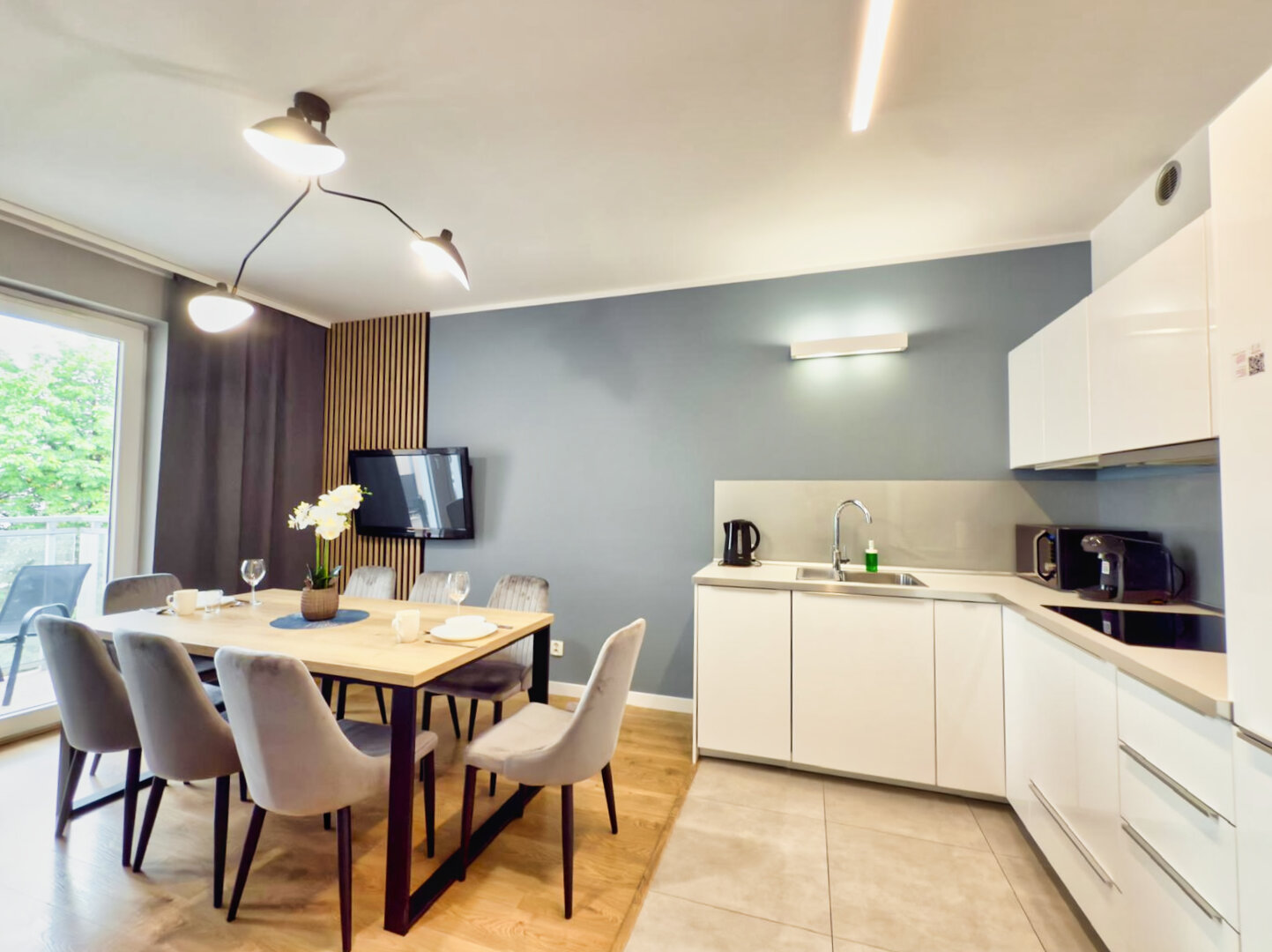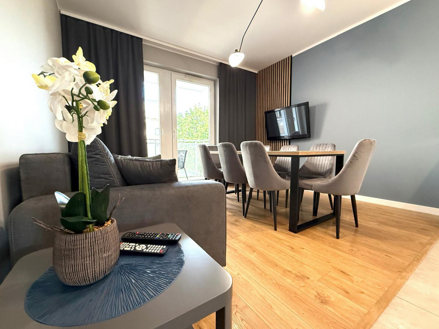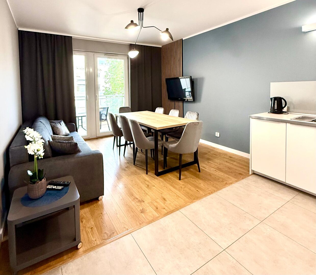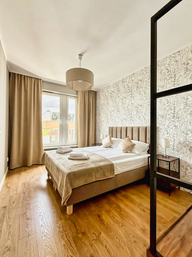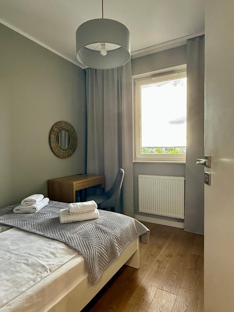 The University Apartment is a spacious private apartment in Toruń, on Bydgoskie Przedmieście Street, close to Nicolaus Copernicus University. Designed with groups and families in mind, it offers comfortable accommodations for up to 8 people, a clear division of day and night zones, and functional furnishings. Guests have access to a kitchenette, a lounge area, and a workspace, making it ideal for both leisure and business stays. The location combines the tranquility of a green neighborhood with good transport links to the city center and popular attractions. The standard of furnishings meets guests' everyday needs without any marketing or frills. Type and StandardThe University Apartment is a spacious private apartment in Toruń, on Bydgoskie Przedmieście Street, close to Nicolaus Copernicus University. Designed with groups and families in mind, it offers comfortable accommodations for up to 8 people, a clear division of day and night zones, and functional furnishings. Guests have access to a kitchenette, a lounge area, and a workspace, making it ideal for both leisure and business stays. The location combines the tranquility of a green neighborhood with good transport links to the city center and popular attractions. The standard of furnishings meets guests' everyday needs without any marketing or frills.
