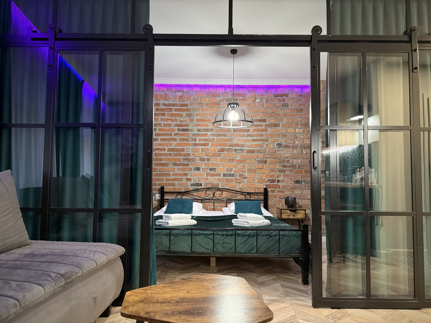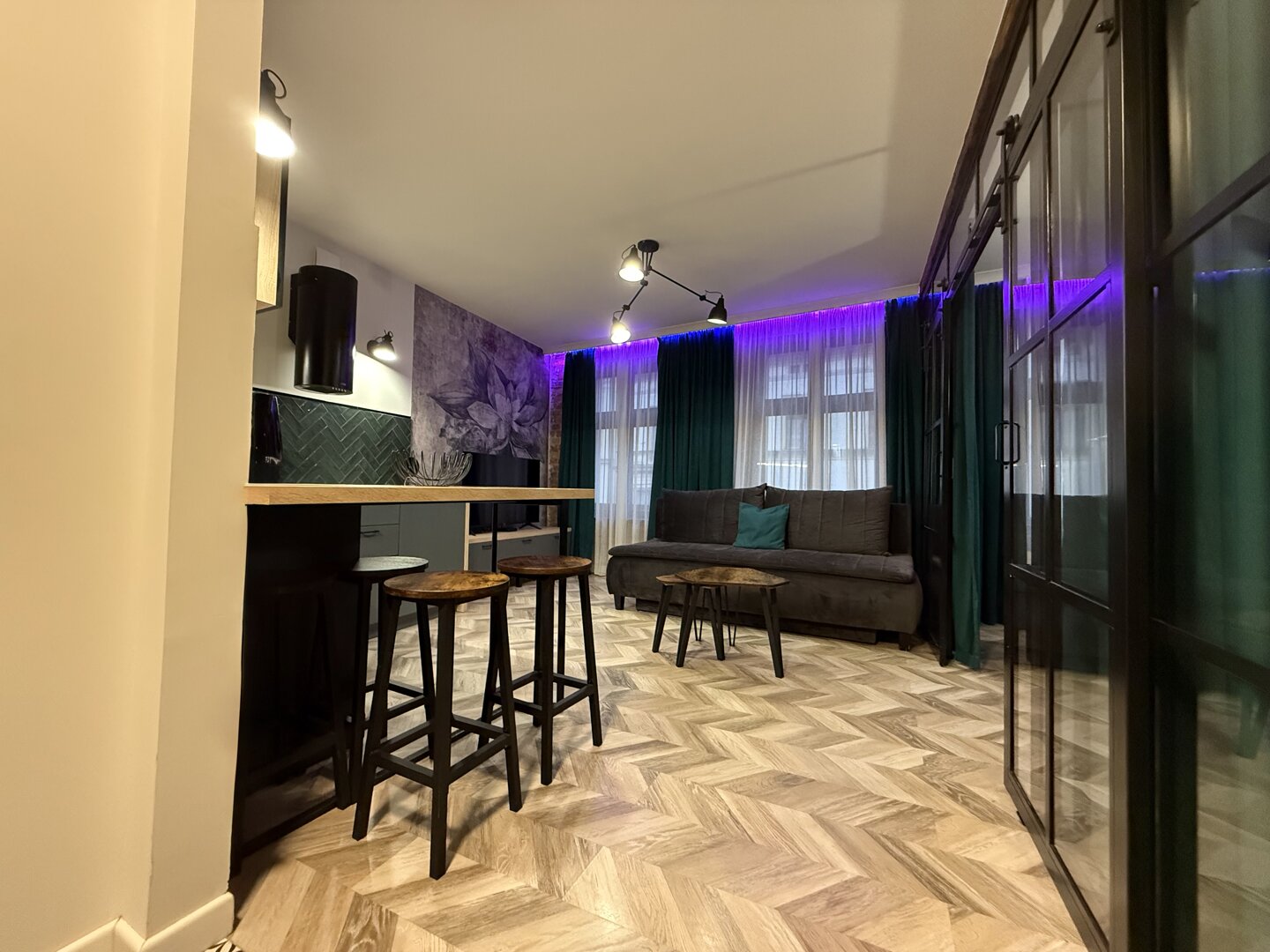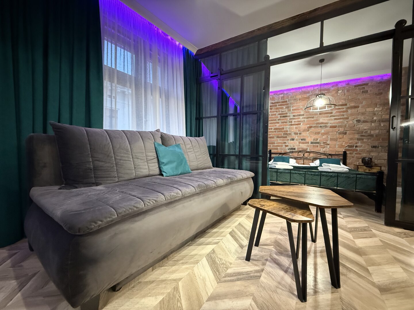 Green Loft by Rentoom is a self-contained loft apartment located in the heart of Toruń, within walking distance of the Old Town's main attractions, restaurants, and public transportation. Designed with individual guests, couples, and small groups of up to four in mind, the space offers a functional living space with an open-plan living area, a fully equipped kitchen, and a private bathroom. The apartment offers a standard of comfort – fast, free Wi-Fi, a TV, a kitchenette, and amenities for self-catering and relaxing. Its location near the Town Hall, the Copernicus Monument, and Philadelphia Boulevard allows for easy walking and access to city services. Pets are welcome upon request and the property provides a private entrance and basic amenities necessary for your stay. Type and Standard