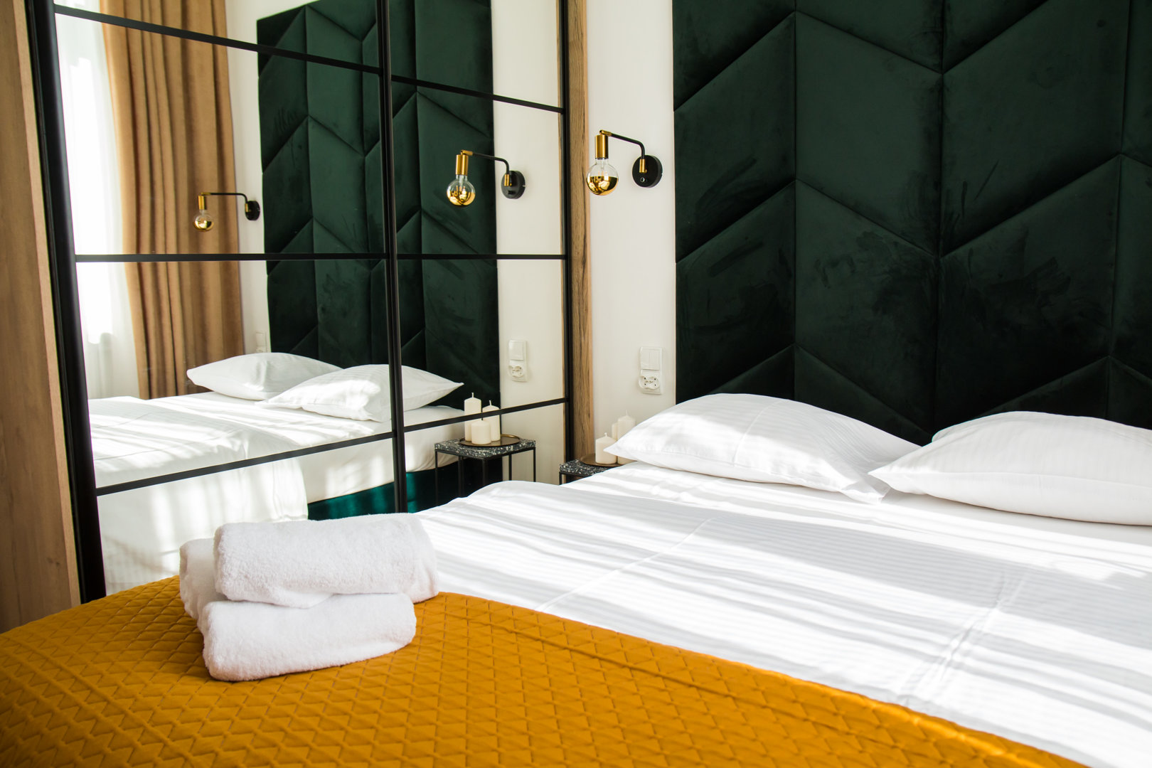 Emerald Room is a fully equipped apartment located at 6 Jagiellończyka Street on the outskirts of Toruń's Old Town, offering a comfortable stay for up to four people. The property combines functional living space with a kitchenette and separate sleeping areas, ensuring a predictable standard without excessive frills. Its location allows for convenient walking tours of Toruń's main attractions, while also providing access to a peaceful, green neighborhood. The apartment is suitable for solo guests, couples, and business travelers. Type and Standard
